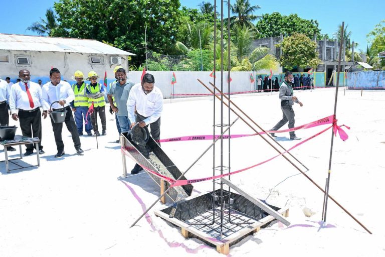 ކުޅިވަރާއި ހަށިހެޔޮކަމާ ބެހޭ ވަޒީރު ޢަބްދުﷲ ރާފިޢު، ފ. މަގޫދޫ ފިޓްނަސް އެންޑް ރެކްރިއޭޝަން ސެންޓަރު (އެފްއާރުސީ) އިމާރާތްކުރުމުގެ މަސައްކަތް ރަސްމީކޮށް ފައްޓަވައިދެއްވައިފިއެވެ.