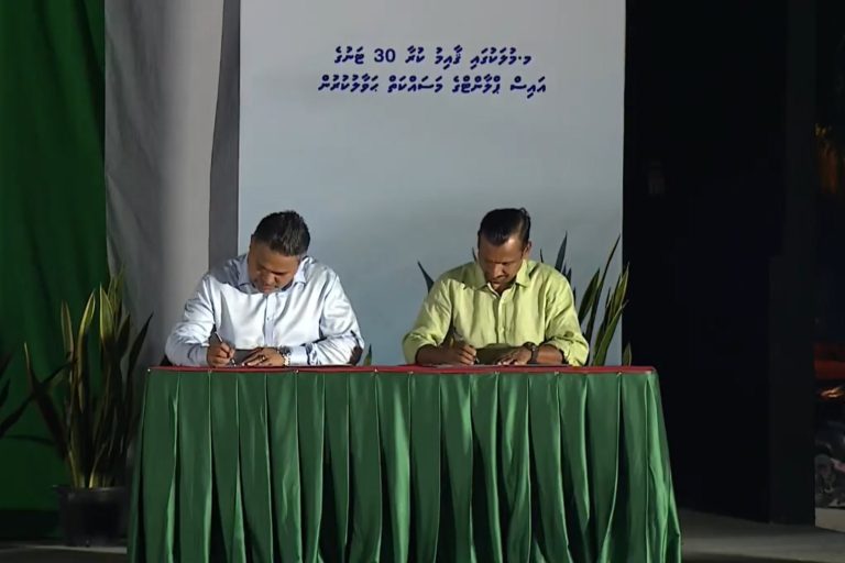 މިކަމަށްޓަކައި މިރޭ ބޭއްވި ރަސްމިއްޔާތުގައި މަސްވެރިކަމާއި ކަނޑުގެ ވަސީލަތްތަކާ ބެހޭ ވުޒާރާގެ ފަރާތުން އެއްބަސްވުމުގައި ސޮއިކުރެއްވީ ވަޒީރު އަޙްމަދު ޝިޔާމެވެ. އަދި 3 ވޭ އެންޓަޕްރައިޒަސްގެ ފަރާތުން ސޮއިކުރެއްވީ އެ ކުންފުނީގެ ޑިރެކްޓަރ، ޑރ. އިކްލީލް ޝަރީފެވެ.