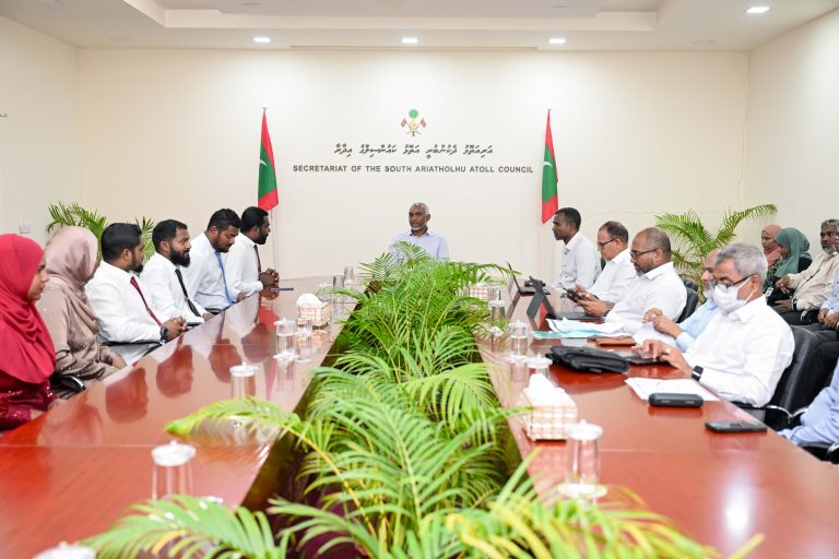 ރައީސް ޑރ. މުޙައްމަދު މުޢިއްޒު، އަރިއަތޮޅު ދެކުނުބުރީ މަހިބަދޫ ކައުންސިލާއި، އ.ތ.މ ކޮމިޓީ އަދި ރަށުގެ ބައެއް މުއައްސަސާތަކުގެ އިސްވެރިންނާ ބައްދަލުކުރައްވައި ރައްޔިތުންނަށް އެންމެ މުހިންމު ކަންކަމާ ގުޅޭގޮތުން މަޝްވަރާކުރައްވައިފިއެވެ.