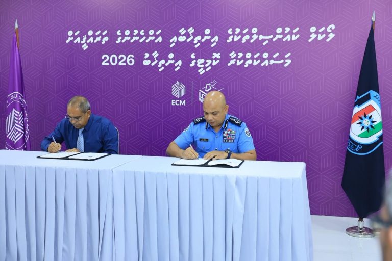 ކުރިއަށް އޮތް ލޯކަލް ކައުންސިލު އިންތިހާބާއި އަންހެނުންގެ ތަރައްގީއަށް މަސައްކަތްކުރާ ކޮމެޓީގެ އިންތިހާބުގެ ސަލާމަތީ ކަންކަން ބެލެހެއްޓުމަށް ދިވެހި ފުލުހުންގެ ޚިދުމަތާއި އިލެކްޝަންސް ކޮމިޝަނާ ދެމެދު ފަހުމުނާމާއެއްގައި ސޮއިކޮށްފިއެވެ.