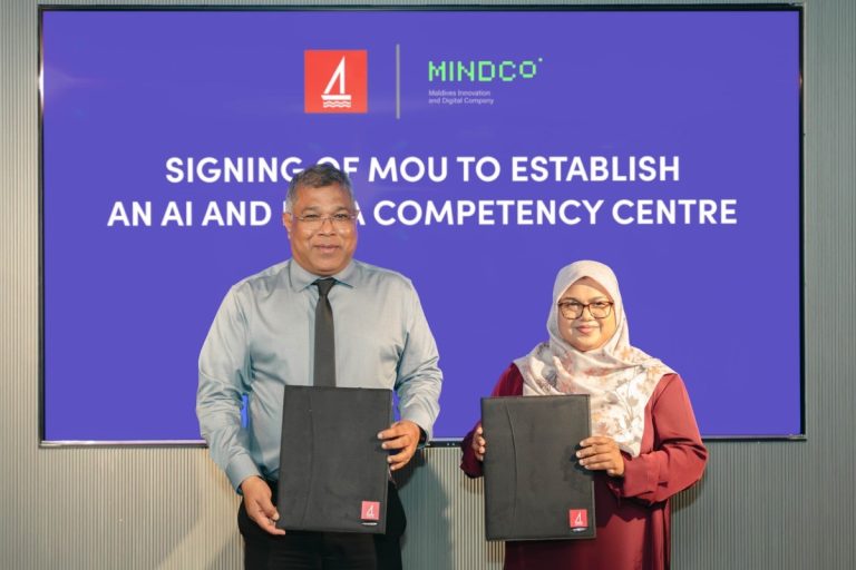 މޯލްޑިވްސް އިނޮވޭޝަން އެންޑް ޑިޖިޓަލް ކޮމްޕެނީ (މައިންޑްކޯ) އާއި ބޭންކް އޮފް މޯލްޑިވްސް (ބީއެމްއެލް) އާ ދެމެދު، އޭއައި އަދި ޑޭޓާ ކޮމްޕިޓެންސީ ސެންޓަރެއް ގާއިމުކުރުމަށް އެމްއޯޔޫއެއްގައި މިއަދު ސޮއިކޮށްފިއެވެ.