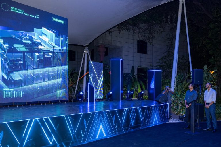 "މި އިމާރާތުގެ 8 ވަނަ ފަންގިފިލާގެ ޝީޓު އެޅުމުގެ މަސައްކަތް މިހާރު ނިމިފައިވާއިރު، އިރާދަކުރެއްވިއްޔާ އިމާރާތުގެ މަސައްކަތް އެއްކޮށް ނިންމައި، މި އަހަރުގެ ނޮވެންބަރު މަހުގެ 11 ވަނަ ދުވަހު ހުޅުވާނަން"، ރައީސް ވިދާޅުވިއެވެ.