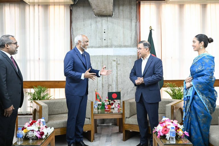 ރައީސުލްޖުމްހޫރިއްޔާ ގެ މިދަތުރުފުޅުގައި ބަންގްލަދޭޝްގެ ބޮޑުވަޒީރުކަމަށް އަލަށް އިންތިޚާބުވެވަޑައިގެންނެވި ހިޒް އެކްސެލެންސީ ތާރިޤް ރަޙްމާން އާއި ބައްދަލުކުރެއްވިއެވެ.