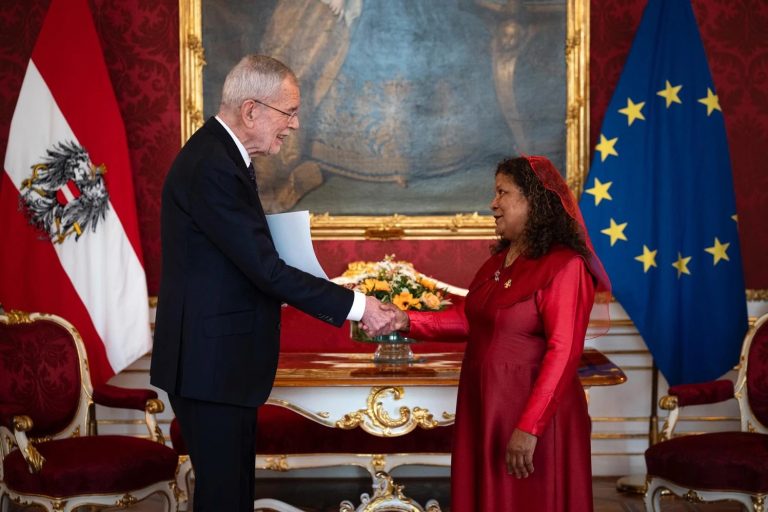 ދިވެހިރާއްޖެއިން އޮސްޓްރިއާއަށް ކަނޑައަޅާފައި ހުންނަވާ ނޮން-ރެސިޑެންޓް ސަފީރު ޑޮކްޓަރ ސަލްމާ ރަޝީދު އެކަމަނާގެ ސަފީރުކަމުގެ ފަތްކޮޅު އޮސްޓްރިއާގެ ރައީސް، އެލެކްސެންޑަރ ވޭން ޑަރ ބެލެން އަށް މިއަދު އަރުވައިފިއެވެ.