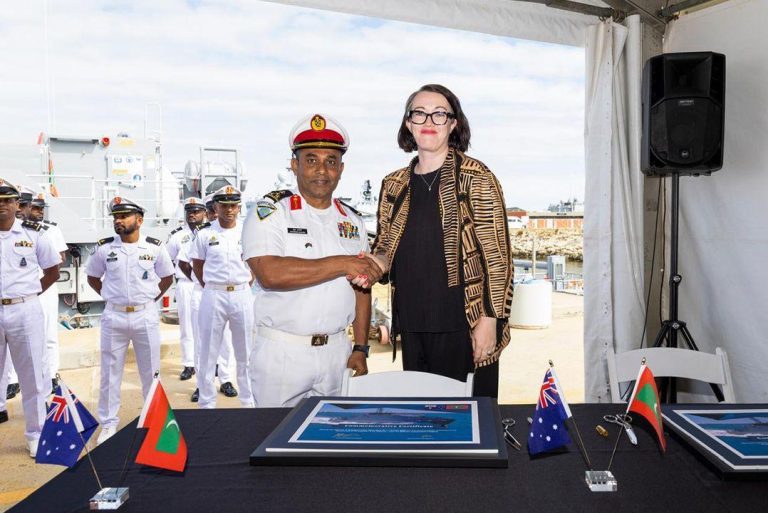 އޮސްޓްރޭލިއާގެ ޕާތުގައި ހުންނަ އެޗްއެމްއޭއެސް ސްޓާލިންގ ނޭވަލް ބޭސްގައި ބޭއްވި މި ރަސްމިއްޔާތު ޝަރަފުވެރިކޮށްދެއްވީ ރޯޔަލް އޮސްޓްރޭލިއަން ނޭވީގެ ރިއަރ އެޑްމިރަލް ބްރެޓް ސޮންޓާއާއި، އެމްއެންޑީއެފް ކޯސްޓްގާޑުގެ ކޮމަޑާންޓް، ބްރިގޭޑިއަރ ޖެނެރަލް މުޙައްމަދު ސަލީމެވެ.